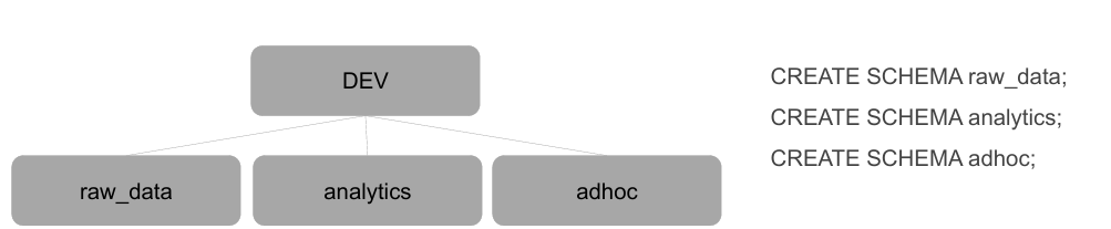 가장 밑단에는 테이블들 그리고 이 테이블들은 데이터베이스(혹은 스키마)라는 폴더 밑으로 구성