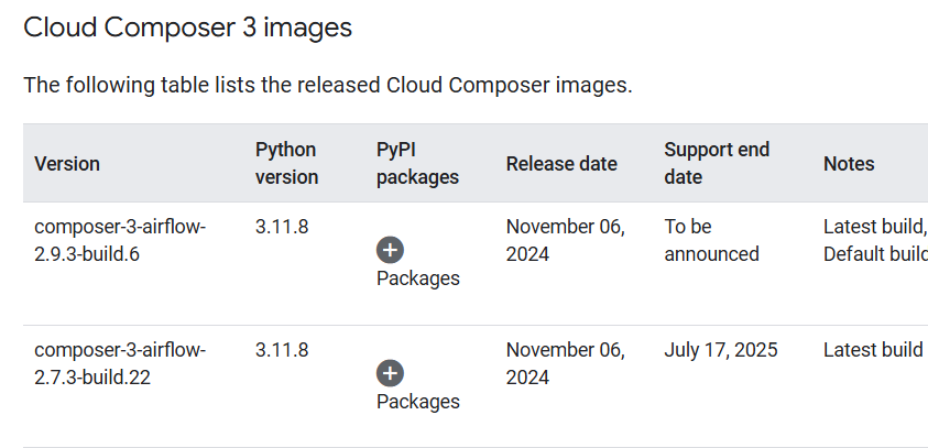 - 오픈소스의 특성상 최신 버전은 버그가 많을 수 있다. 그래서 안전하게 가고 싶으면 google.cloud에서 airflow를 어떤 버전을 쓰는지 확인하면 된다. Cloud Composer version list | Google Cloud