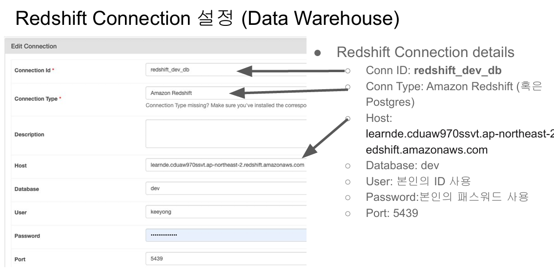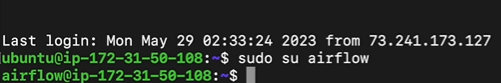 - EC2에서의 사용자 관리: EC2에서는 기본적으로 ubuntu라는 사용자 계정이 생성된다. 이 계정은 superuser 권한을 가지고 있으며, 처음에는 ubuntu로 로그인 후, 필요한 경우 다른 사용자 계정으로 변신하여 프로그램을 설치한다. 예를 들어, airflow와 postgres 사용자로 변신하여 해당 프로그램을 설치한다.
