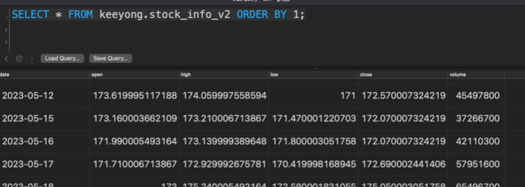 임시 테이블로 Yahoo Finance API로 읽어온 레코드 적재
