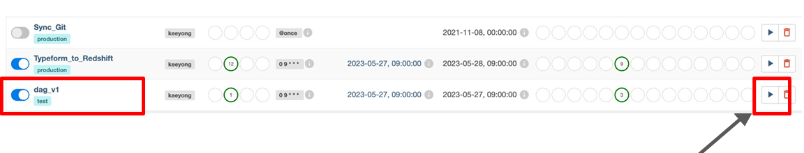 Web UI를 통해서 Admin에서 variables와 connections를 세팅, 그 후 dag들을 활성화해 실행해 log명령을 통해 어떤 결과 나오는지 확인 할 수 있다.