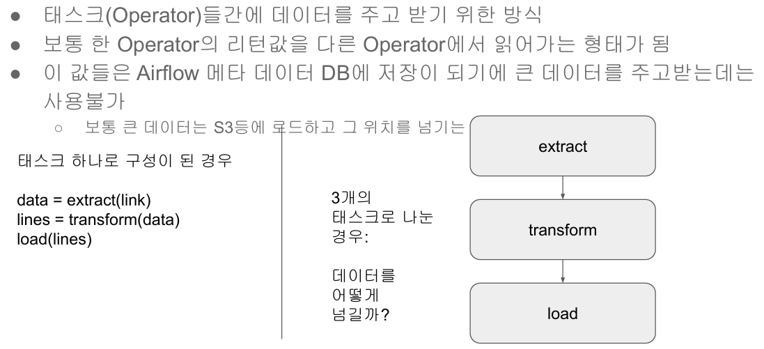 - DAG에서 task를 어느 정도로 분리할까? -> 오래 걸리는 DAG는 실패시 재실행이 쉽게 다수의 task로 나눈는것이 좋음