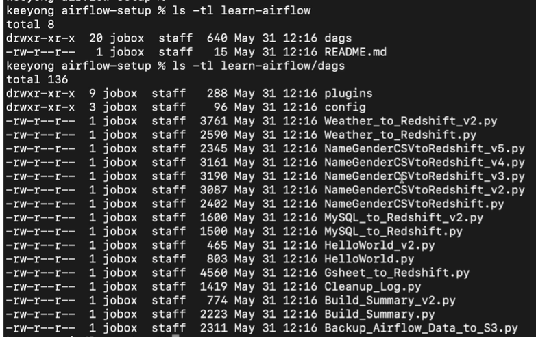 - airfow-setup Github repo 클론한다. git clone https://github.com/keeyong/airflow-setup.git