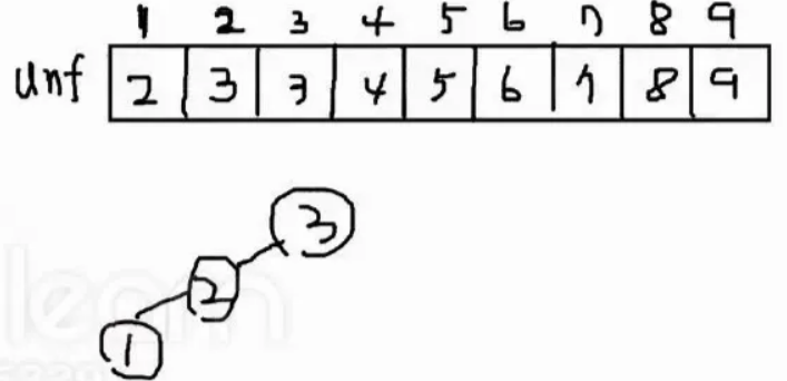 find(2)는 unf[2]=find(3)하고 find(3)을 return 받는다.