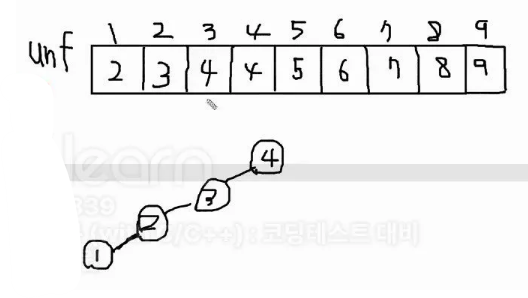 그렇게 쭉 unf[3]=find(4)까지 한다.