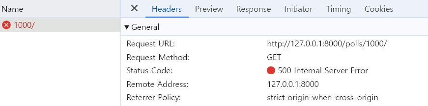 하지만 여기서는 404가 아닌 500에러가 나온다(서버 자신이 문제라는 뜻)