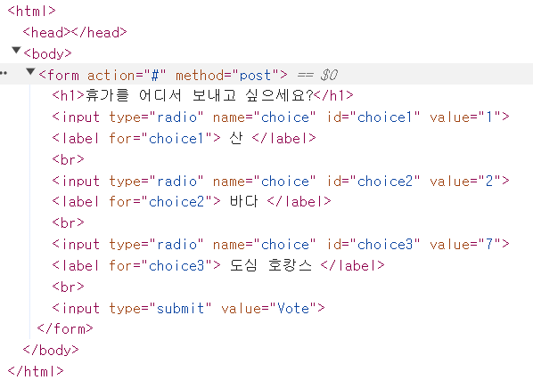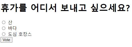 아직 vote는 안올라간다. 이제 form action의 주소를 설정해서 투표를 받는 기능을 만들어줘야한다.
