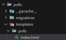 -> templates/polls 폴더 새로 만들고 안에 index.html파일을 만들자.
